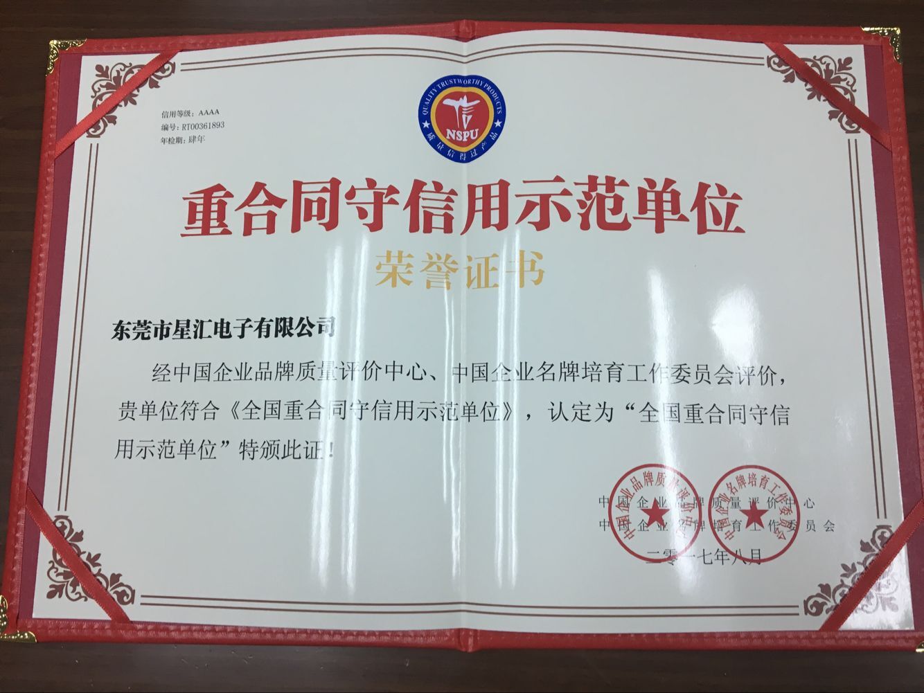 產(chǎn)品名稱:重合同守信用示范單位榮譽(yù)證書